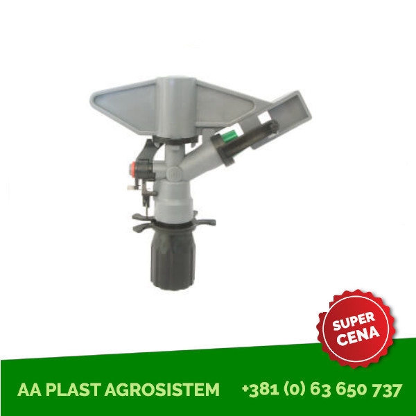 Rasprskivač Ermis Ulaz 1” VN Jedna dizna. Sektorski. Plava dizna Potrošnja vode 1580 do 2500 l/h Prečnik zalivanja 26-32 m Prizvođač Palaplast SA Grčka, EU Za sve dodatne informacije pozovite